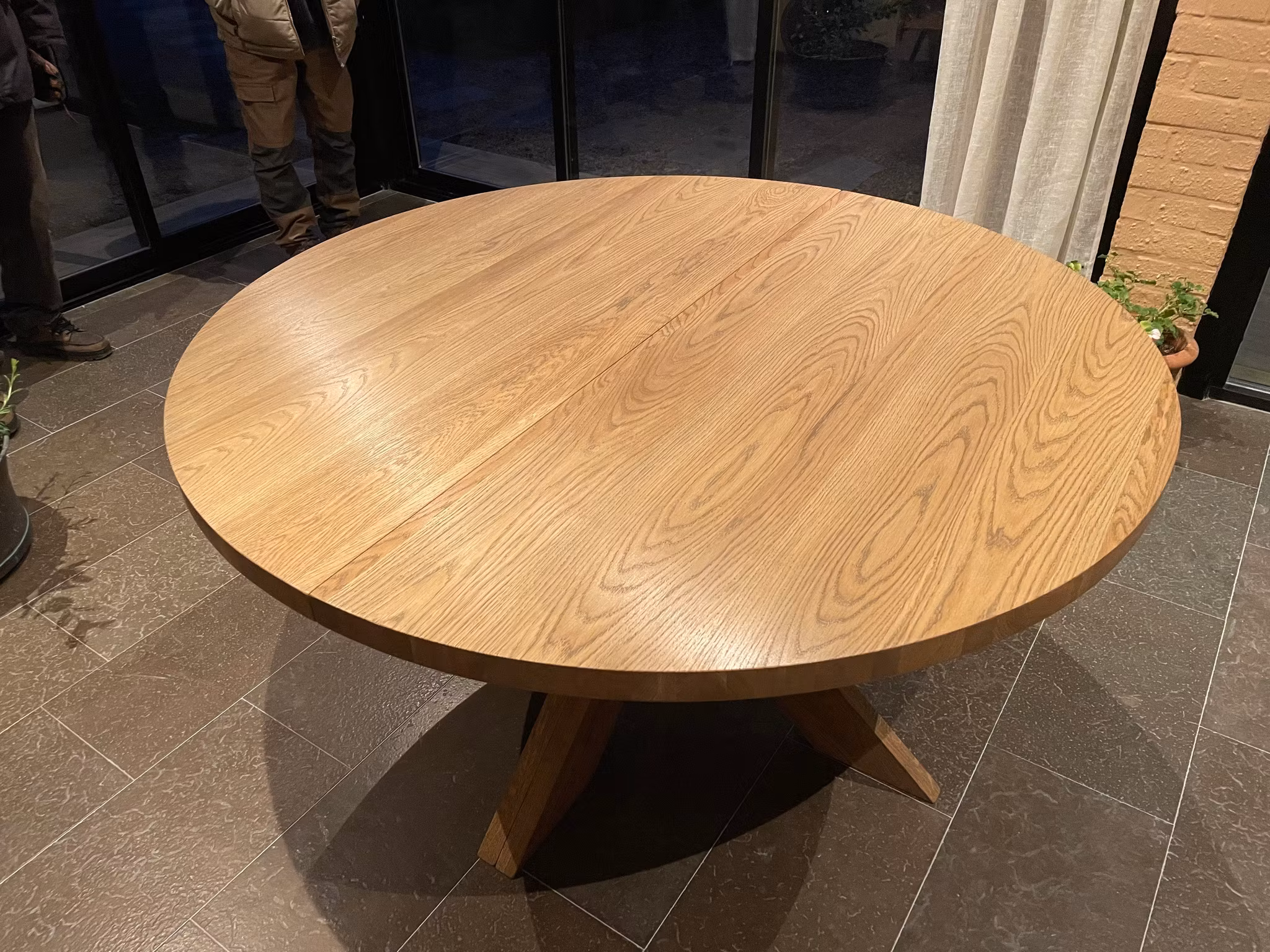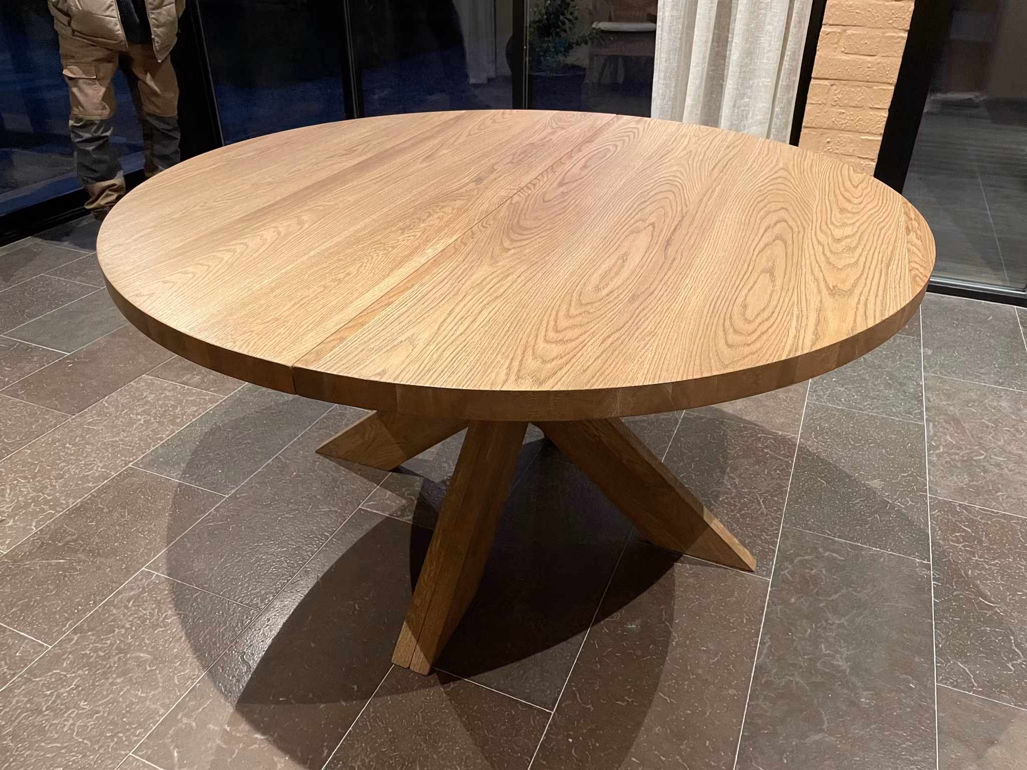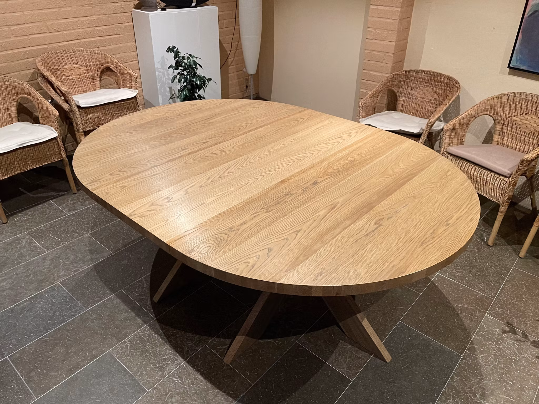 Ek Grafit. Runt bord 100-160 med iläggsskivor 16 000 kr Diameter 100 110 120 130 140 150 160 Tjocklek bordsskiva 30 40 Antal illäggsskivor 1*500 2*500 3*500 Lägg i korgen Närproducerade unika möbler Måttanpassat efter önskemål Dela upp din betalning certifierad ehandel Artikelnummer: 198 Leverantör: Runt matbord med 1-3 iläggsskivor tillverkat i exklusiv limfog i helstav. Borden passar lika bra till det lilla sällskapet som till stora festen. Bordsskivan är 30 eller 40 mm tjock och kan beställas i måtten 100 -180cm i diameter med 1-3 iläggsskivor, bordet är 74cm högt. När du beställer ditt bord, vänligen skriv i meddelandet vilken ytbehandling du önskar till ditt bord.Under bordet sitter utdragsskenor och snäppen, bordet dras enkelt isär och iläggsskivorna placeras. Var gärna 2 när ni lägger i skivorna, det är massiv ek. Iläggsskivorna är 500mm djupaVåra bord levereras monterade, alltså slipper du funderandet, skruvandet och allt som har med monteringen att göra. Det enda som behövs är en god granne eller en sämre vän för att bära in bordet. Antalet goda grannar eller sämre vänner beror på bordets storlek och er gemensamma styrka ;) Var rädda om er!Vi kan om man saknar ovanstående lämna utdragsskenorna lösa vilket gör att bordet bärs in i två halvor. Ställ ihop halvorna och skruva fast skenan i de förborrade hålen. Väldigt enkel montering. Berätta hur du vill ha det kommentarsfältet vid beställning så gör vi så.StorleksguideDiameterAntal platser1 x iläggsskiva2 x iläggsskiva3 x iläggsskiva1004–66–88-1010-121104–66–88-1010-121205–77–99-1111-131305–78–1011–1313-151406–89–1212–1414-161507–910–1213–1515-171608–1011–1314–1616-18Produkterna utvecklas ständigt, nya kulörer tillkommer, ett annat underrede kanske lockar mer. Hinner inte alltid uppdatera sidan. Varmt välkomna att söka kontakt vid frågor.