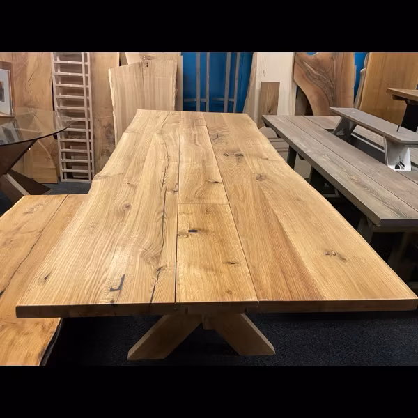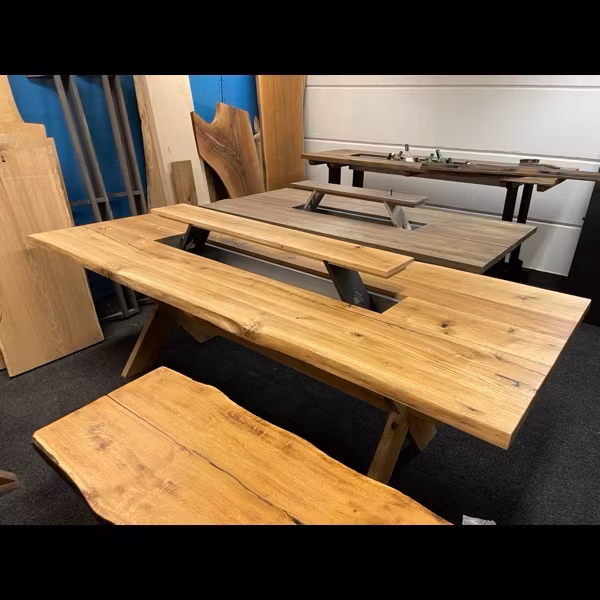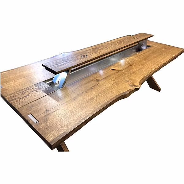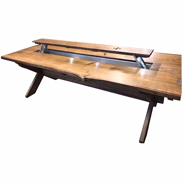 Midsommarbordet i rustik ek med levande kanter. Modell 16 24 000 kr längd 240 300 200 bredd 100 86 Ytbehandling Naturoljad dark oak black Lägg i korgen Närproducerade unika möbler Måttanpassat efter önskemål Dela upp din betalning certifierad ehandel Artikelnummer: 86 Leverantör: Sörbins Borden tillverkas i rustik ek med levande kanter. Kvistar och mycket ådring som verkligen ger liv åt trät och gör att just ert bord blir unikt. Inget är den andra likt. Mittdelen består av ett uppfällbart lock. Under locket ligger en isolerad låda. För vilket ändamål lämnar vi upp till er, dryck, kryddor, förvaring eller varför inte plantering. I änden av lådan sitter en tappkran för smidig tömning. Underredet är ett klassiskt X-underrede med genomgående bom.Om ni har en annan önskan på kulör hittar ni färgkarta i länken https://sorbins.se/sidor/fargkarta