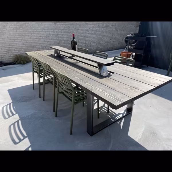 Midsommarbordet M24 16 000 kr Kulör Grå Svart Vit natur Mått 200*86 200*100 250*86 250*100 300*86 300*100 Lägg i korgen Närproducerade unika möbler Måttanpassat efter önskemål Dela upp din betalning certifierad ehandel Artikelnummer: 245 Leverantör: Sörbins Modell 24 har som vanligt samma toppskiva men ett rustikt underrede i kraftigt svetsat 4 kants stål. Bordet tillverkas i massiv 40mm furu. Perfekt bord till sommarens fester. Bordet kan stå ute krävs men ett visst enklare underhåll krävs. Ta bort löv och smuts osv. Behandla det gärna med en transparent olja mitt i sommaren och ev innan ni ställer in det för vintern. Det är massiva plankor, små sprickor är vanligt förekommande och ger bordet en härlig rustik karaktär. Ni får med underhållsolja som räcker över några säsonger vid köp av bord. Sen finns det att beställa vid behov. Vi håller det lite enkelt med färgval. Men givetvis möter vi upp ert behov. Finns en länkt till färgkarta längst ner.Vi kan såklart måttanpassa borden. Upp till 4meter är mögligt. Skicka din förfrågan med ett mail till [email protected]. Vi gör en specialprodukt just för dig.https://sorbins.se/sidor/fargkarta-utmohus