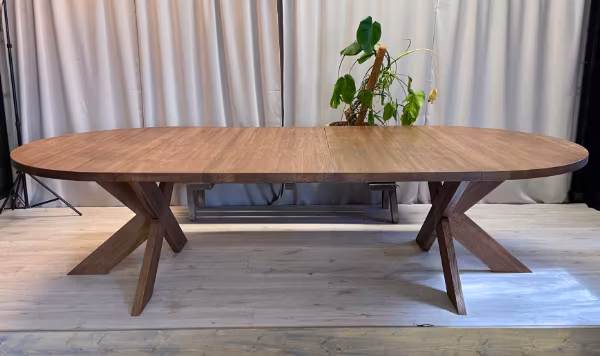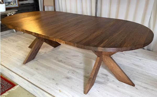 "Tobak" runt 100-160 matbord i ek med 1-3 illäggsskivor 16 000 kr Diameter 100 110 120 130 140 150 160 Tjocklek bordsskiva 30 40 Antal illäggsskivor 1*500 2*500 3*500 Lägg i korgen Närproducerade unika möbler Måttanpassat efter önskemål Dela upp din betalning certifierad ehandel Artikelnummer: 152 Leverantör: Runt matbord med 1-3 iläggsskivor tillverkat i exklusiv limfog i helstav. Borden passar lika bra till det lilla sällskapet som till stora festen. Bordsskivan är 30 eller 40 mm tjock och kan beställas i måtten 100 -180cm i diameter med 1-3 iläggsskivor, bordet är 74cm högt. När du beställer ditt bord, vänligen skriv i meddelandet vilken ytbehandling du önskar till ditt bord.Under bordet sitter utdragsskenor och snäppen, bordet dras enkelt isär och iläggsskivorna placeras. Var gärna 2 när ni lägger i skivorna, det är massiv ek. Iläggsskivorna är 500mm djupaVåra bord levereras monterade, alltså slipper du funderandet, skruvandet och allt som har med monteringen att göra. Det enda som behövs är en god granne eller en sämre vän för att bära in bordet. Antalet goda grannar eller sämre vänner beror på bordets storlek och er gemensamma styrka ;) Var rädda om er!Vi kan om man saknar ovanstående lämna utdragsskenorna lösa vilket gör att bordet bärs in i två halvor. Ställ ihop halvorna och skruva fast skenan i de förborrade hålen. Väldigt enkel montering. Berätta hur du vill ha det kommentarsfältet vid beställning så gör vi så.StorleksguideDiameterAntal platser1 x iläggsskiva2 x iläggsskiva3 x iläggsskiva1004–66–88-1010-121104–66–88-1010-121205–77–99-1111-131305–78–1011–1313-151406–89–1212–1414-161507–910–1213–1515-171608–1011–1314–1616-18Produkterna utvecklas ständigt, nya kulörer tillkommer, ett annat underrede kanske lockar mer. Hinner inte alltid uppdatera sidan. Varmt välkomna att söka kontakt vid frågor.